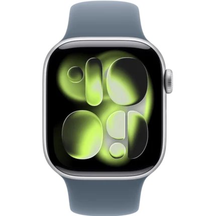 اپل واچ سری 10 نقره ای با بند اسپرت سیلیکون آبی جین با گارانتی 18 ماهه