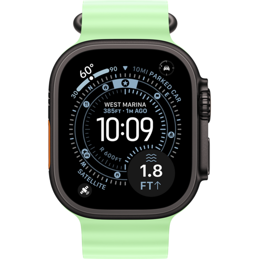 مشخصات کلیApple Watch Ultra 3 Titanium Black Case with Neon Green Ocean Band